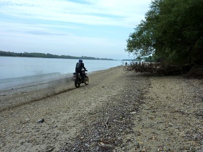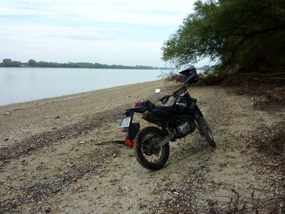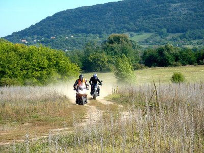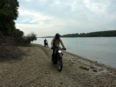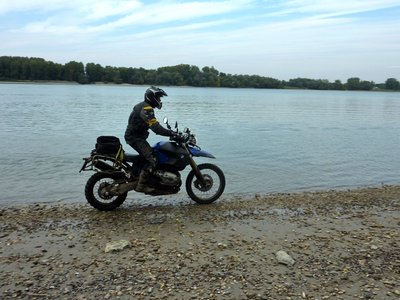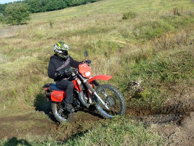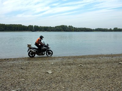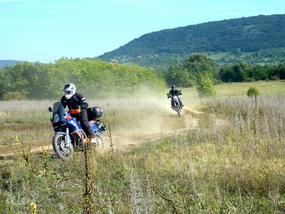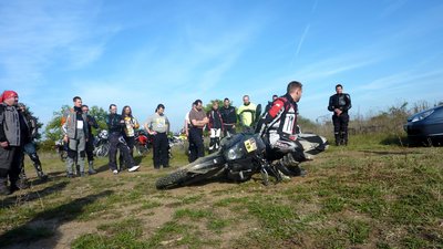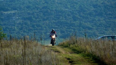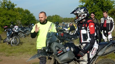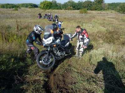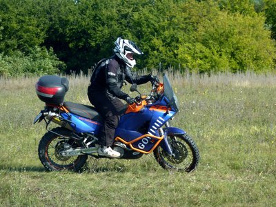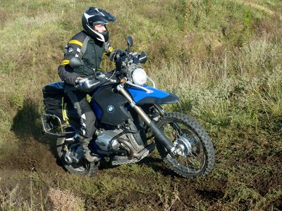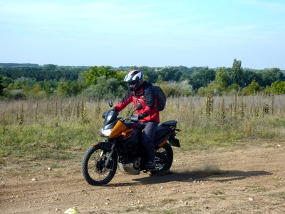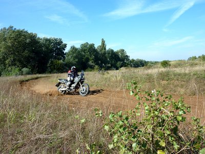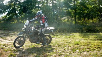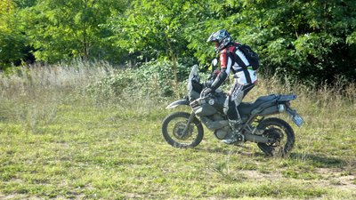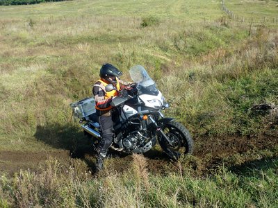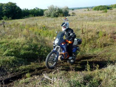 A KTM 990 Adventure terepgumikkal simán vette az akadályokat - a vezetője szemmel láthatóan nem ma volt először terepen