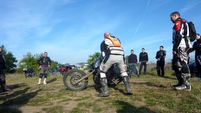 Feladat: emelkedőn állva elindulni. A laza talajon a nagy dögökkel ez nem volt egyszerű, hiába indult meg oldalra a segge, nem szabadott elvenni a gázt. Ha mégis, akkor jött a csoportos gyúrás