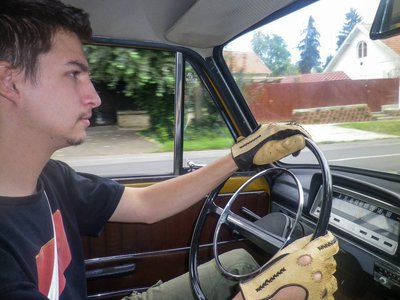 Pojácakesztyűben, mert az kell (egyébként így kevésbé is csúszik a kormány)