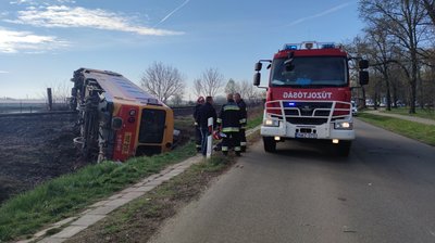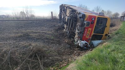 A balesetet okozó Citroën Jumper kisteher, háttérben a baleset másik alanya, az oldalára dőlt Bz