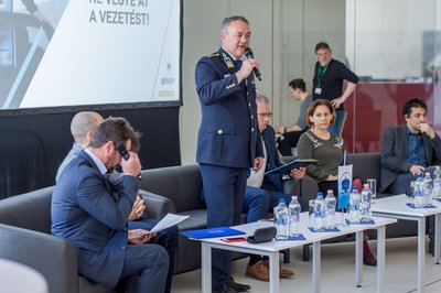 Óberling József rendőr ezredes a mikrofonnál
