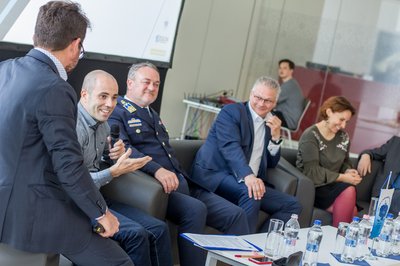 Reményiné Csekeő Borbála, a két meghívott pszichológus egyike, tőle balra Demetrovics Zsolt pszichológus, jobbján pedig az Aegon vezérigazgató-helyettese, Szombat Tamás