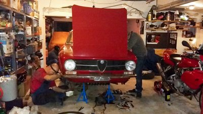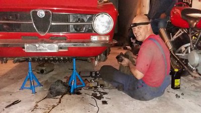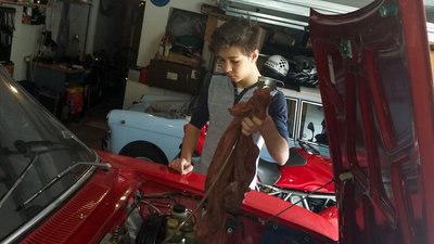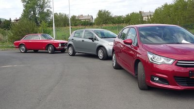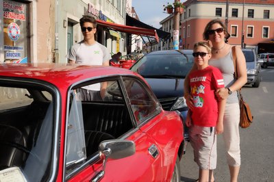 A BMW M5-i8 roadster szlovéniai tesztelésén találtunk egy hajszálpontosan olyan autót, mint az enyém, szintén 1971-es, piros 1300 GT Junior. Csak ezt megfelnisítették, megfakormányosították, valami csüccs is van alatta