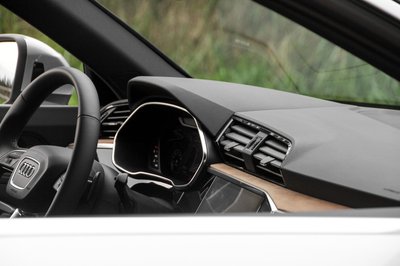 Egyetlen markáns ív van az új Q3 műszerfalán: maga az egész vezető előtti rész van úgy ívelve, hogy minden a sofőr felé forduljon