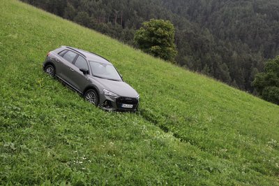 Nem terepjáró, de nem akad fent minden fűszálon. Még az esőtől nedves-csúszós réten is fel lehetett vele óvatosan tolatni - ehhez persze kell a Quattro-hajtás is