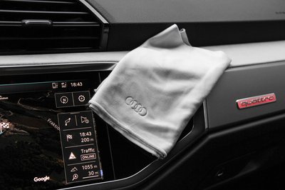 Onnan lehet tudni, hogy mennyire központi téma manapság az autókban az infotainment meg a kijelzők, hogy a display környékét is fényes feketére lakkozzák, hogy egybefüggő felületet kapjanak -és hogy Audi-logóval dombornyomott mikroszálas kendőt találunk a