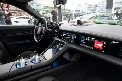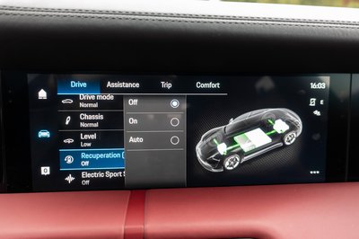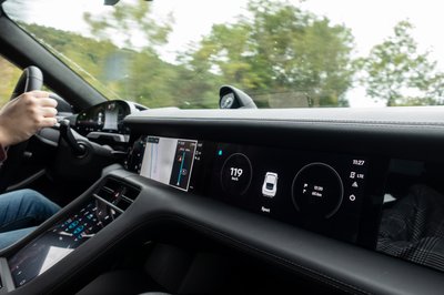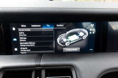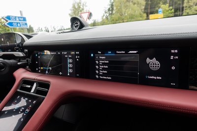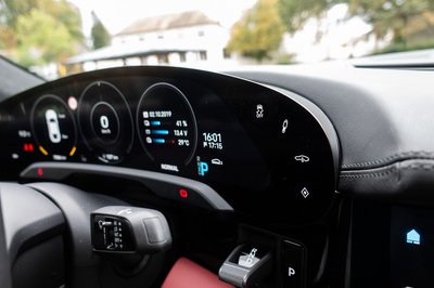 Ez a rezisztív-haptikus touchpad és klímapanel talán a Taycan digitális felületének a leggyengébben kitalált része. A klímát egyébként csak képenyőről lehet irányítani, fizikai módon nem.
