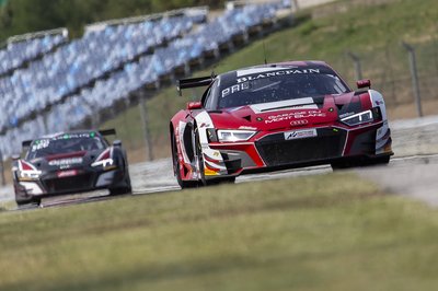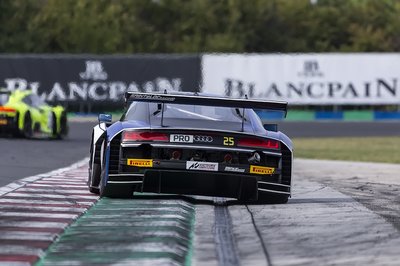 A fő program természetesen a GT3-as autók csatája, itt éppen a Sainteloc Racing egyik Audi R8 LMS GT3-asa rombol a Mansell kanyarból kifelé vezető íven. Az Audik alkotják a mezőny derékhadát, így akinek erre a típusra porcosodik, az rögtön 12 darabot is l