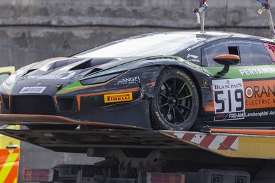 A Hamaguchi-Keen páros már a szabadedzést is véresen komolyan vette, sikerült is túltolni a tempót a Lamborghini Huracánban, aminek anyagi kár és piros zászló lett a vége