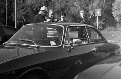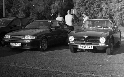 Bálint az Alfával a Hűvösvölgyi úton. Épp csak kivehető a míniumos jobb hátsó sarok