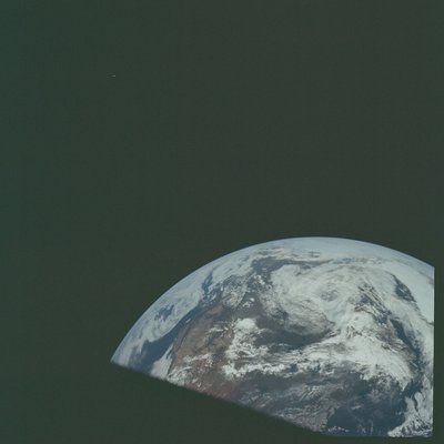 A legénység fotója, amit a Földtől távolodva, útban a Hold felé készítettek
