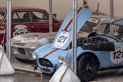 A velem egyidős 76-os Porsche 936 GT2 kidugta a klasszikus orrát a boxból, ellenőrizni a folyton változó időjárási körülményeket. Így mégiscsak könnyebb eldönteni, milyen alkalomhoz illő gumikat húzzon fel.