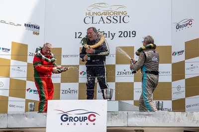 Az ünneplés a dobogón pont okyan, mint bármilyen autósport rendezvényen. Kivételt azok képeznek, akik több autóval, akár több kategóriában is rajthoz állnak, ez nem ritka a Classic hétvégéken. Nyilván ők azok, akik nem állnak neki pezsgőt vedelni.