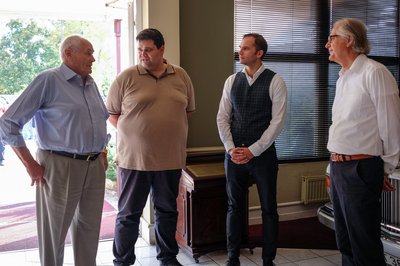 A Marriot hotel előtt. Oláh Gyárfás, Hercsel Máté, Mary-Ann Odor, Anna Odor, Ódor János, Linczmayer Balázs