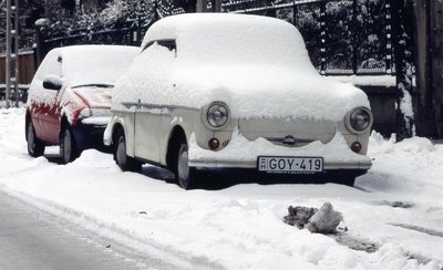 Előző autómmal, a Trabival megyek épp munkába