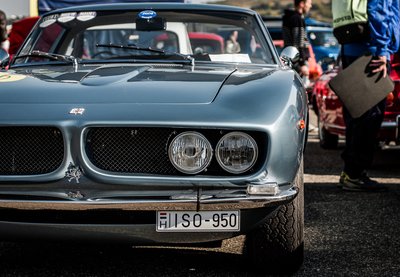 A kiállítói parkolóban kezdtem, ahol már az elején ledobta az agyam az ékszíjat. Az ott tényleg egy magyar rendszámos Iso Grifo? Tényleg! Ebből a Giorgetto Giugiaro tervezte gyönyörűségből kevesebb készült, mint LaFerrariból, és mégis ott állt hanyagul, a