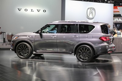 Az Infitni legnagyobbjából se sok mászkál Európában. Ez itt a QX80, egy 5,3 méteres full size SUV