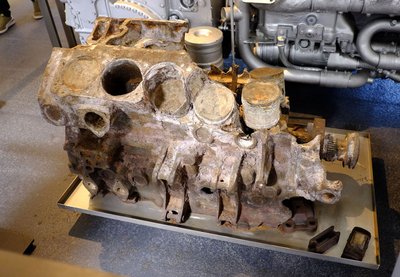 Közelebb hozzánk az 1955-ben tervezett, 48 240 köbcentis, 650 lóerős, V12-es, turbós dízelmotor (Maybach GTO 6), a távolabbi egy MD 650-es, ami 64 500 köbcentis, 1100 lóerős, szintén V12-es, szintén dízel, hatszelepes hengerfejekkel, 1949-ből