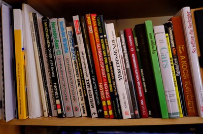 Egy Merci-dízel- és két olaszautó-szerelőkönyv nálam