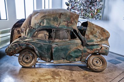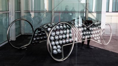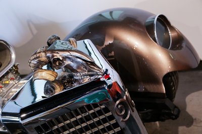 Absztrakt roncsautó a művészet oltárán feláldozva. Rengeteg installációt találunk nem csupán a divattal kapcsolatban, hanem vintage benzinkút oszloptól kezdve cirádás felniken át gyakorlatilag bármivel találkozhatunk a látogatás során.