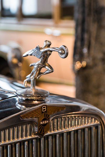 Az 1930-ban gyártott Nash 8 4900 ccm-es 8 hengeres, 100 lóerős "Ambassador" büszkén ágaskodó emblémája maga is egy időtálló ipari műremek.