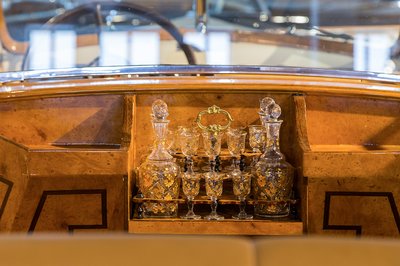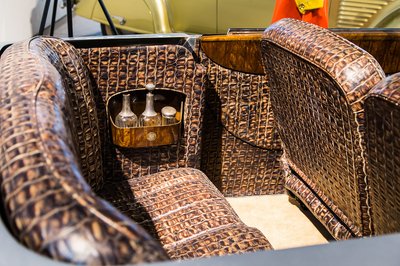 A 30-as években az oldallégzsákot még nem találták fel, így a krokodilbőr ülésekben tespedve csinos üvegbutykosból elfogyasztott itallal lehetett előre tompítani egy esetleg bekövetkező baleset következményeit.