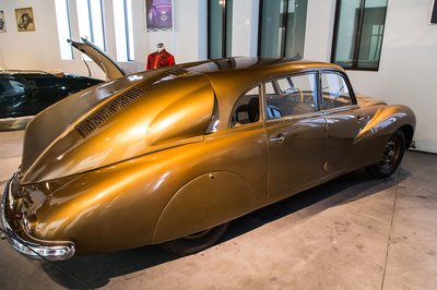 Tombol az Art Deco. 1938-ban gyártották ezt a Panhard Et Levassor-t, amelynek 2900 ccm-es, hathengeres motorjából 100 lóerőt nyertek ki. Hat évvel azelőtt a Nash V8-asa, közel dupla ekkora hengerűrtartalomból hozta ki ugyanezt. Különlegessége a középre he