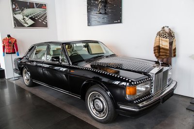Michael Jackson Swarowskival díszített Rolls-Royce-a. A háttérben egy fotó, illetve egy fellépőruha a halhatatlan zsenitől. Ennél kevés hivalkodóbb dologgal lehet helyet változtatni, ami Jackonak a személyiségéhez alapvetően passzolt. Egyébként ő maga is