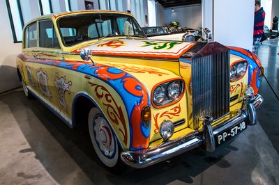 Nem éppen egy hippivágen, a neve mégis Flower Power. Rolls-Royce Phantom V 1968-ból, harsány színekkel és mintákkal rendesen körbepingálva egészen mellbevágó élmény, szürreális hatást kelt.