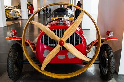 Az első világháború után a megmaradt repülőgép motorokat ilyen módon, gépjárművekbe beépítve is megpróbálták hasznosítani. A francia Marcel Leyat Helicron 2 1932-ben készült prototípusából összesen kettő darab létezik a világon, itt az egyik.