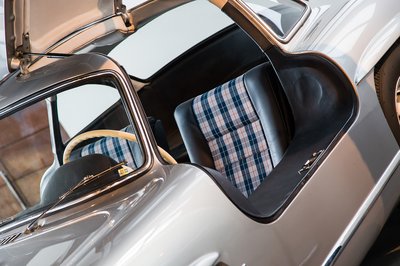A sirályszárnyas Mercedes SL300 1956-ban abszolút csúcskategóriás luxust képviselt. Korának leggyorsabb szériagyártású autója, a világ első szériában beépített befecskendezéses motorjával, jelenleg is egy vagyont ér, most meg?! Ezekkel a helyes, kockás ül