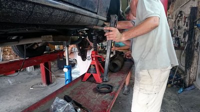 Elég tökölős meló szétnyitni a futóművet, mert a rugó nagyon erős