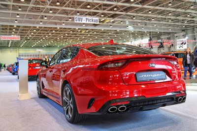 A csúcsragadozók szekcióban a sor végén az új Kia Stinger. Nagyon dög élőben is, a vadító vörös kifejezetten jól áll neki