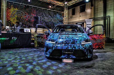 Ahol a tuning felüti a fejét, ott előbb vagy utóbb sorra kerül a hangrendszer is. A Pioneer látványos és hangos standdal készült az idei showra, színes, zajos füstös a kiállítótér, a DJ folyamatosan tolja a bulihangulatot