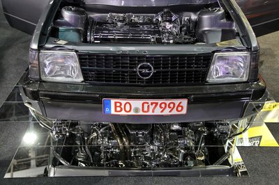 Utcán sem nagyon látni már ilyen öreg Opel Kadett D-t, itt pedig új, csodás életre keltettek egy példányt. Érdemes egy pillantást vetni a motor alulnézetére is a tükrös felületen