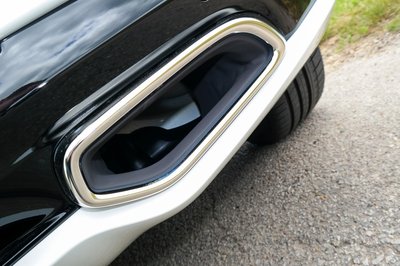 A valódi cső illúzióromboló módon érkezik meg a látványos kipufogóvégnek látszó fémhatású keretbe