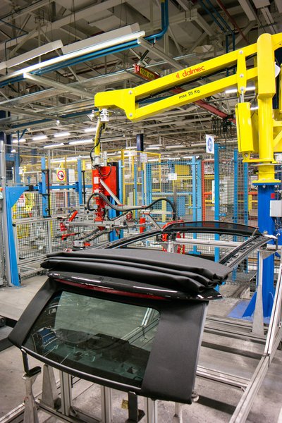 Ez meg a helyére illeszti. Egy nap csak 20 kabrió készül, és ha aznapra vége, másnapig így várja a következő munkadarabot