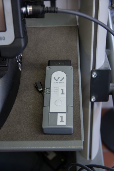 A kommunikációs interfész a diagnosztikai csatlakozóba dugva egy Golf VII-esen. A kapcsolat vezeték nélküli
