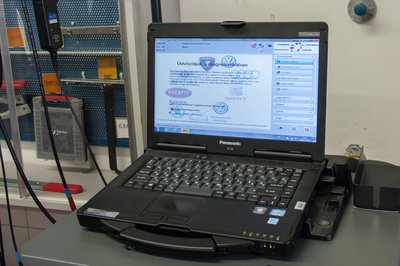 A Panasonic Toughbook az egyszerűbb változata a hardvernek, amelyen a dignosztika fut. Műhelykörülményekhez igazított a robosztussága