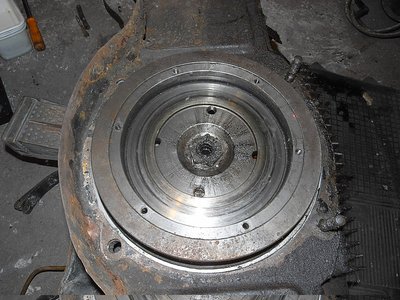 Egy, hatalmas csavar és három edzett csap tartja helyén a lendkereket