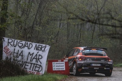 Akik nélkül valószínűleg nem lenne raliverseny Magyarországon: a szurkolók! A rossz idő sem szegte kedvét a fanatikusoknak, akik a szakadó esőben is izgatottan várták, hogy magyar pályákon láthassák versenyezni Európa legjobbjait. A kép a péntek esti mári