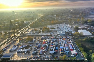 Ébredezik a szervizpark a nyíregyházi KGST piac parkolójában. A versenyre összesen közel 120 páros nevezett, az autók ugyan még a zárt parkolóban (kép alja) álltak, a sátrak alatt azonban már javában zajlott az előkészítő munka. Kulcsfontosságú kérdés vol
