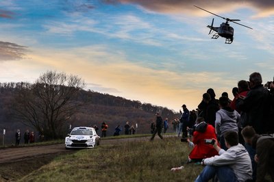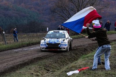 A Rally Hungaryra a környező országokból is rengetegen érkeztek. A képen látható cseh szurkolók épp az idei junior ERC bajnok Mares-Hlousek párosnak lengetik zászlójukat, akik az első nap végén, az abszolút negyedik helyről kényszerültek kiállni.
