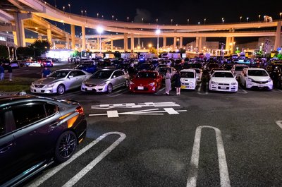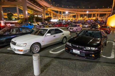 Áttekinthetetlen autópálya-szövevény gyűrűjében bújik meg a Dajkoku parkoló. Csak a középső szintről lehet behajtani, mi kétszer próbáltuk más emeletekről, ott voltunk egy kerítésnyire a csodáktól, de bejutni csak kábé ötven kilométernyi körben autózás ut