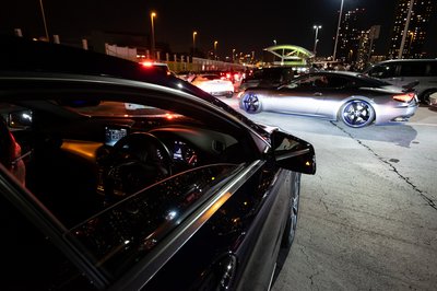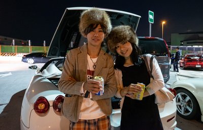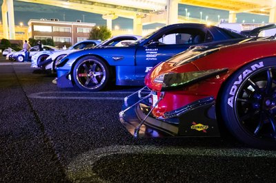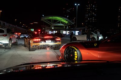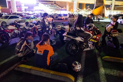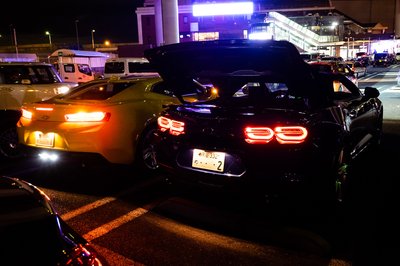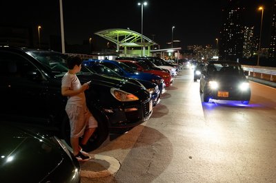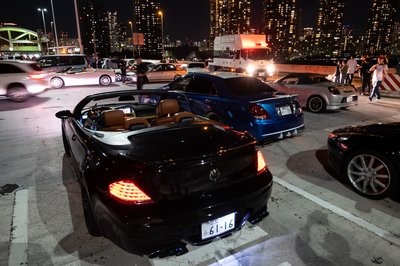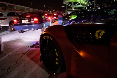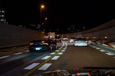 Később száguldósra vették a figurát, mentünk velük, amíg lehetett. Aztán az egész ferraris-lamborghinis csapat leparkolt az autópálya leállósávjában (Japán nem Németország, itt merik), onnan mi hazahúztunk