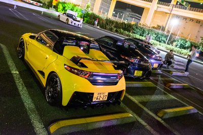Autó és speedmotor határán: Honda S660 némi tuninggal, már amennyi a módosított géptetőből (vagy mi is az ennek az autónak az orrán), a szárnyból, a kerekekből és a vonószemből látszik