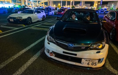 Gusztusos Subaru STi, a háttérben egy erősen termékfutár-festésű Supra