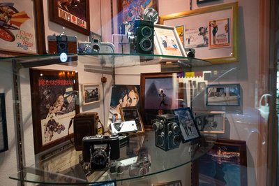 Híres hatvanas évekbeli filmplakátok viaskodnak a figyelemért a kétaknás (TLR) Mamiyaflex fényképezőgéppel