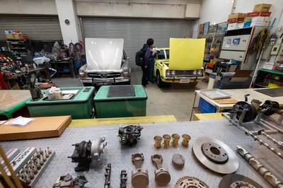 Kint, az udvarban, féltető alatt a Toyota Soarer és a Nissan 240Z. Utóbbi egy szentkehely-Z 432-es kivitel 1971-ből, amelynek az orrában 160 lóerős, kétliteres, sorhatos, 24-szelepes DOHC-motor van. A 432 jelentése: 4 szelep, 3 karburátor, 2 vezérműtengel