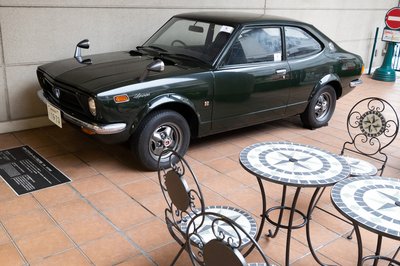 Általában a History Garage második szintjét találja meg azon az emeleten jobban zajlik a plázaélet. Rögtön jobbról egy éktelenül metálzöld orr fogad: 2. generációs Toyota Corona (RT20), 1961-től gyártották. Nem lehet nem észrevenni a Panorama Rekord-rokon